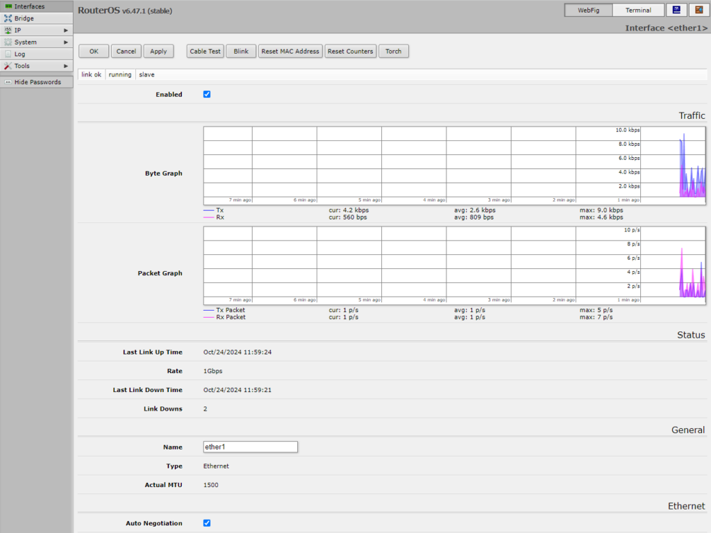 Link Down: How many times the link has dropped. This number can represent a router or cable issue if it is high (this number will be relative to uptime)