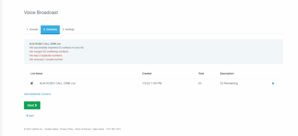 - Select “Export Data”, ensure it is saved as a .CSV. Robocaller will not accept any other type of file extension. Below is a picture of the page. Some errors and duplicate numbers are normal. Ensure that the description number is close to what the report showed. Otherwise, you may have an issue with the file.